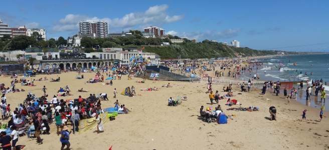 Down at the pier and the main beach, which you always see in newspaper pictures of seaside hot spots, was busy, busy, busy; beach parties with tables laden with food and very loud sound systems. A walk to the end of the pier brought a bit of peace and a good view of the zip wire which takes you back to the beach.